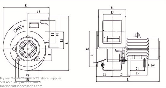 The ventilator can be matched with marine. AC motor of 380 V, 50 Hz. or marine DC motor of 220 V.