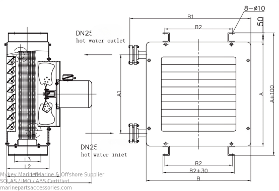 CNF(R) Series Hot Water Heating Fan with 10-45 kW Heating Capacity and LF3 Antirust Aluminum Impeller for Marine Use