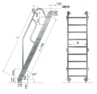 | Example Of Marking: Stainless Steel Inclined Ladder with a Ladder Height L=24oomm and Ladder Width B=600mm STAINLESS STEEL INCLINED LADDER 2400X600 2670GQ002-00 |