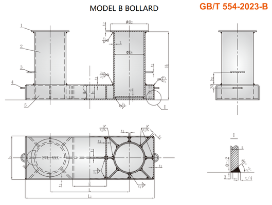 Comply with IMO MSC/Circ.1175/Rev.1 and ISO 13795 and other standards, clearly marking the safe working load (SWL), usually not less than 1.25 times the breaking strength. Differences from dock bitts - Ship bitts (Bitts): Fixed on the deck, transmitting and transferring the rope tension to the hull, being the fixed point at the ship's end. - Dock bitts (Bollard): Fixed on the shore, shared by multiple ships, being the fixed point at the dock end.
