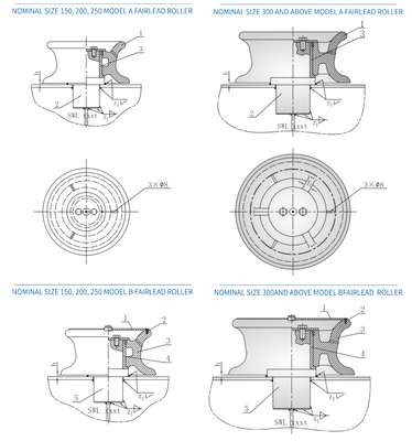 High Corrosion Resistance Marine Fairlead Roller with 150-500MM Nominal Size and 19-198T SWL for Ship Mooring Lines