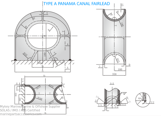| THE DIMENSIONS AND SWL OF TYPE A PANAMA CANAL FAIRLEAD | mm | ||||||||||
